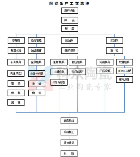 形狀各異且外表精美的氧化鋯陶瓷產品都是經過很長一段時間的生產工藝流程而得,其中包括原料制備,成型,燒結以及陶瓷精加工,品檢等重要步驟。
